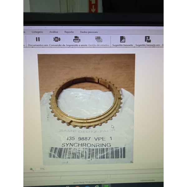 Anilha Sincronizadora 3/4 Velocidade 04359887/10, aplicado em tratores Deutz D 5206, D6206, D4507, D4807, D6007, DX110, DX120, DX140, DX85, DX90, DX3.10SC, DX3.30SC, DX3.50SC, DX3.65SC, DX3.80SC